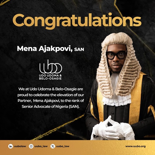 We at Udo Udoma & Belo-Osagie are delighted to announce the elevation of our Partner, Mena Ajakpovi, to the rank of Senior Advocate of Nigeria